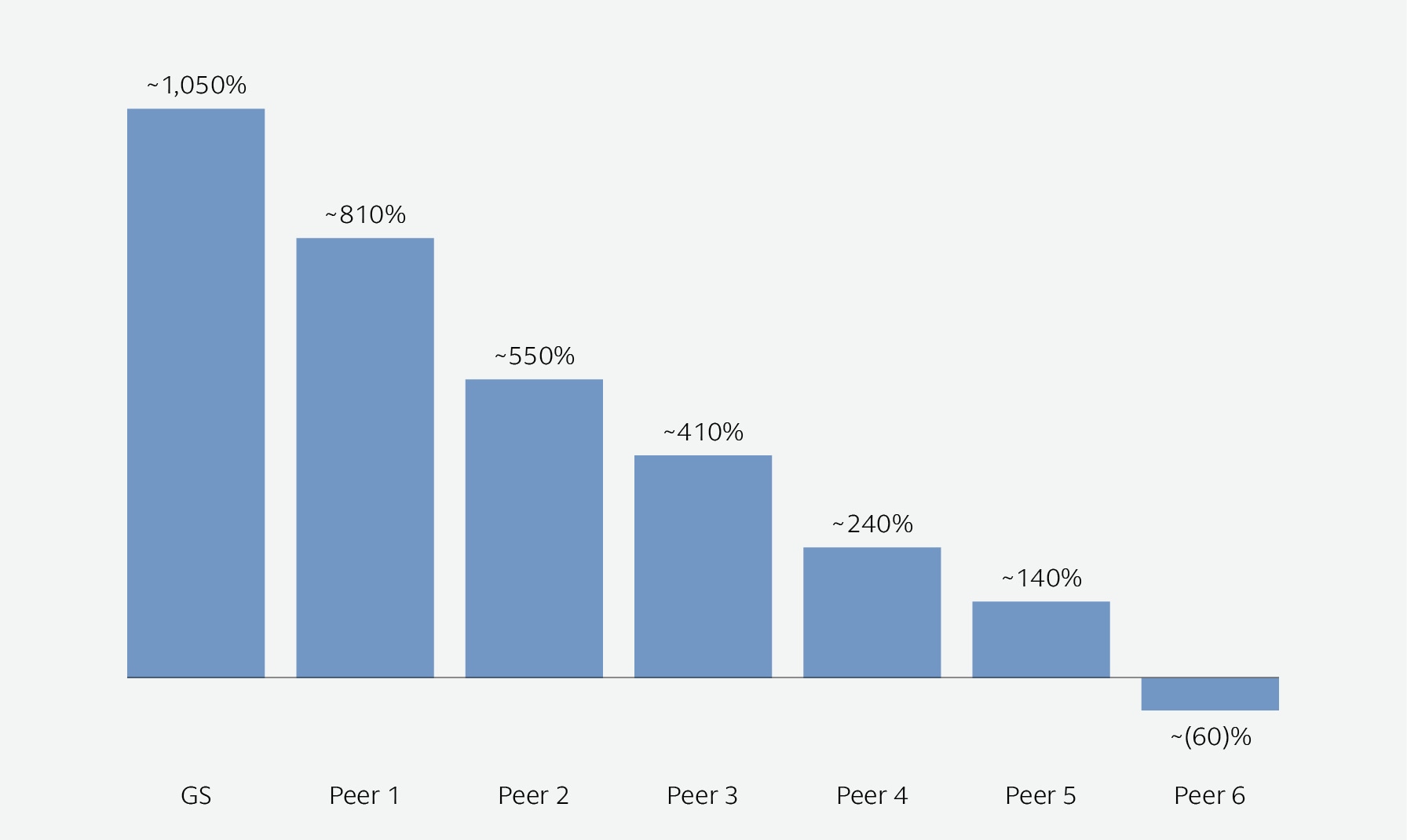 1Total shareholder return includes dividends reinvested without payment of any commission. Total shareholder return for 2024 as of December 31, 2024, growth vs. December 29, 2023 (last market day of 2023). Total shareholder return since GS IPO as of December 31, 2024, growth vs. May 4, 1999.