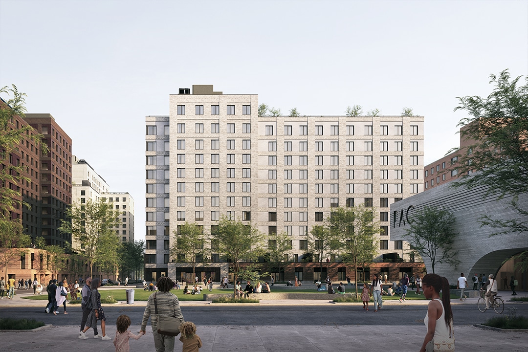 A comprehensive renovation of 664 public housing units across 42 buildings, Frederick Samuel Apartments serve over 1,300 residents through NYCHA’s Permanent Affordability Commitment Together initiative. The buildings will convert to project-based Section 8 properties post-renovation, ensuring upgraded units remain permanently affordable. The developers are Genesis Companies and Lemor Development Group, two Harlem-based developers, with construction led by Monadnock Construction.