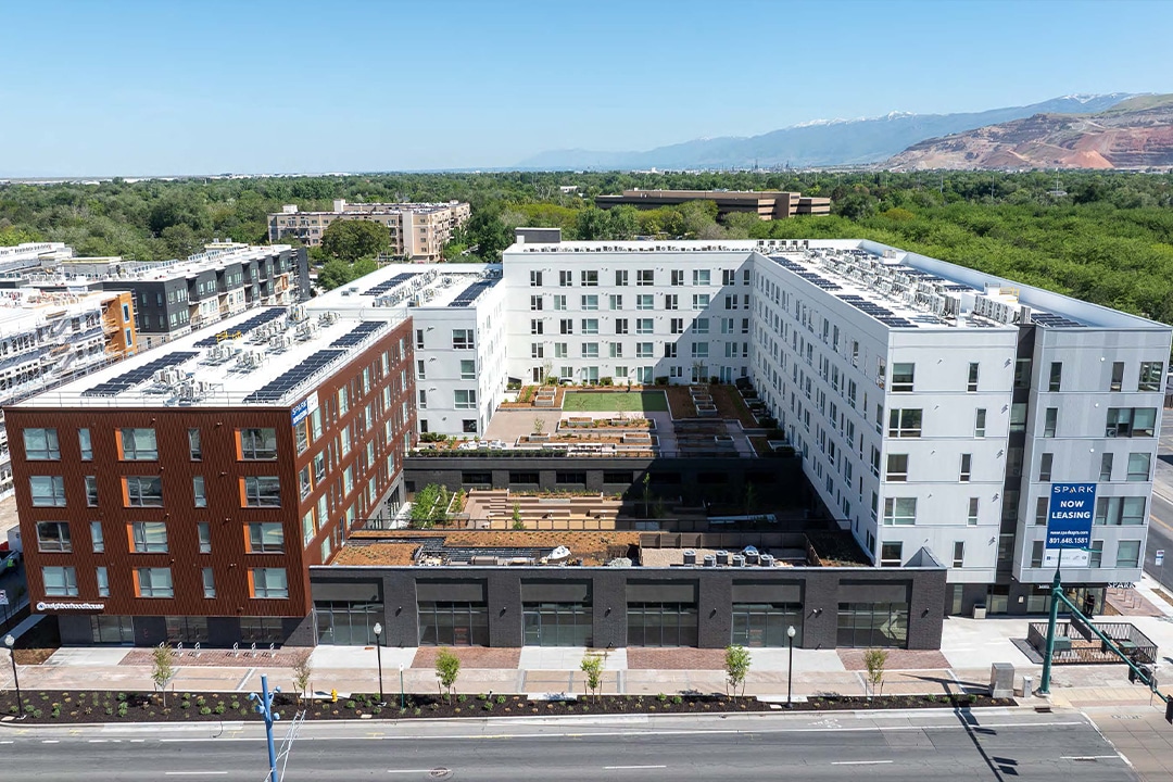 Spark is a 200-unit, 100% affordable housing project in Salt Lake City. The development will provide deeply affordable units to residents and include an on-site high quality, affordable childcare center, run by local nonprofit Neighborhood House. Public sector partners include the Utah Housing Corporation and the Salt Lake City Community Reinvestment Agency. The developer is Brinshore Development.