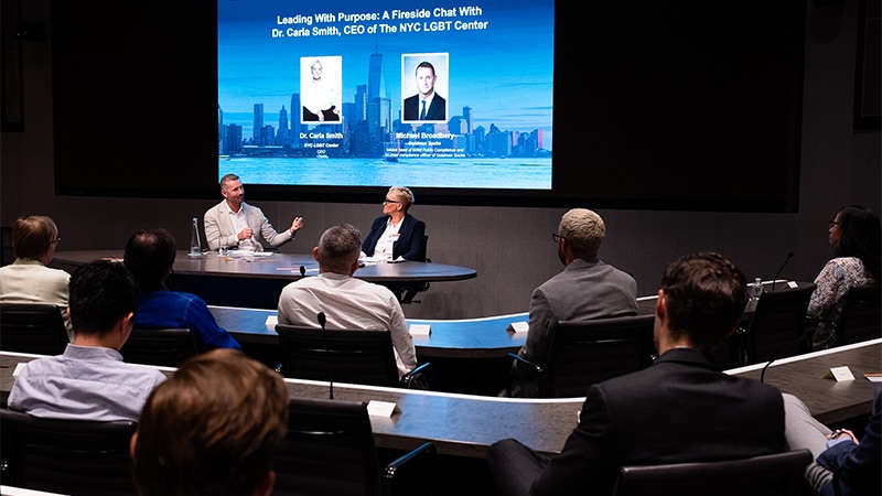 In recognition of Pride Month, the Americas LGBTQ+ Network, in partnership with the Americas Black Network, welcomed Dr. Carla Smith, CEO of The NYC LGBT Community Center, for a fireside chat with Michael Broadbery, global head of Global Banking & Markets Public Compliance, head of the Americas LGBTQ+ Network, and board member at The Center.