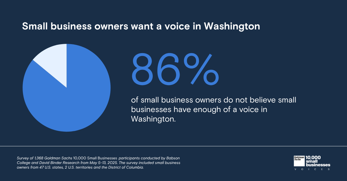 Survey of 1,368 Goldman Sachs 10,000 Small Businesses participants conducted by Babson College and David Binder Research from May 5-13, 2025. The survey included small business owners from 47 U.S. states, 2 U.S. territories and the District of Columbia.