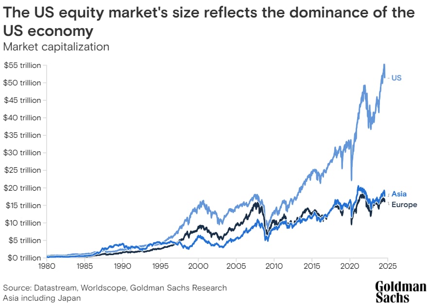 While the US has had the largest stock market and the biggest economy for a long time, the gap with other markets has widened since 2008 far more than in the past. “To some degree, that's because the US had a more successful recovery after the financial crisis than Europe or Asia,” he says.
