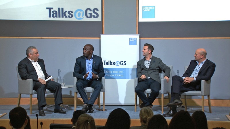 Entrepreneurship is about problem solving. Goldman Sachs hosted three successful entrepreneurs – 10,000 Small Businesses graduate Byron Dixon of Micro-Fresh; Matt Riley of Daisy Group; and Lance Uggla of Markit – to talk with Michael Sherwood, vice chairman of The Goldman Sachs Group and co-CEO of Goldman Sachs International, about the big challenges their companies work to solve and the small ones that come with starting from the ground up.