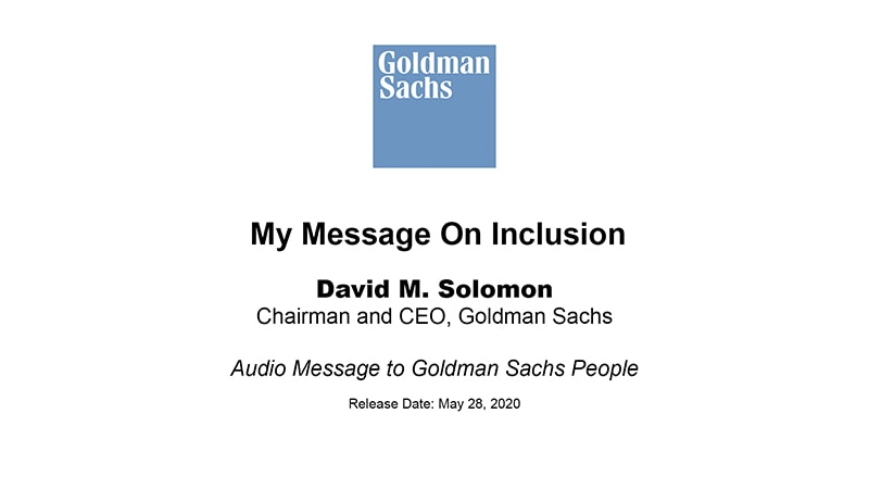 I want to remind each of you that as a community – there is no place at Goldman Sachs for racism or discrimination against any group in any form.