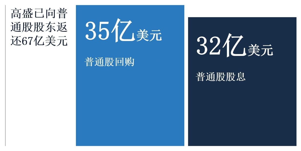 在整个公司层面内,高盛仍将不遗余力实现财务目标,强大的业务实力也使我们有信心实现这一目标。过去三年里,我们的平均普通股本回报率是14.8%,与我们的目标一致,较同业(注释10)平均水平高出320个基点。而且,如果排除2020年诉讼的影响,我们的平均普通股本回报率将高出大约130个基点。