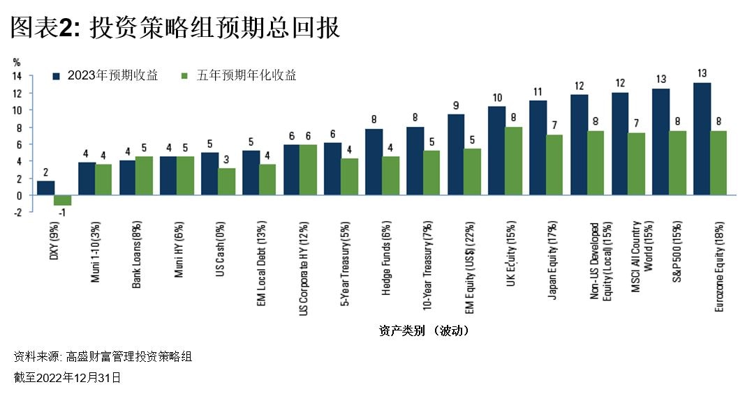 高盛投资策略组认为大多数主要央行将继续收紧货币政策,但步伐将比 2022年更为温和。在主要经济体中,中国将是例外,中国央行将继续采取宽松的货币政策。