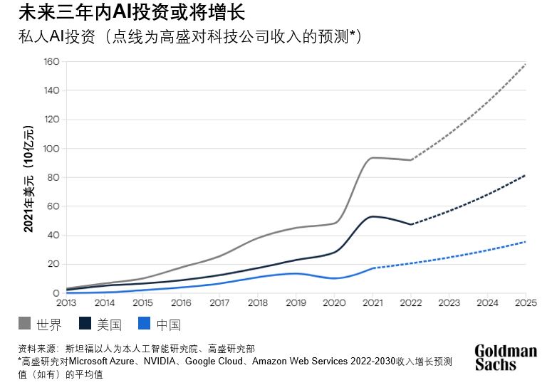 高盛研究部的经济学家Joseph Briggs和Devesh Kodnani在报告中指出,生成式AI具有巨大的经济潜力,在广泛使用后十年内每年可提高全球劳动生产率超过1个百分点以上。但要实现大规模转型,企业将需要对实体、数字和人力资本进行大量前期投资,以获取和实施新技术,并重塑业务流程。他们也提到,这些投资的时间点将早于采用生成式AI技术所带来的效率提升及高生产力,全球的生成式AI投资规模到2025年或将达到2000亿美元左右。