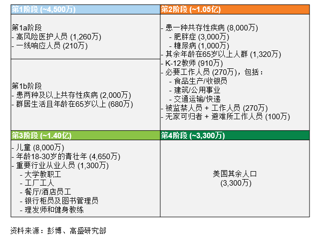 FDA上周授权紧急使用疫苗,按照目前的疫苗接种计划,第一批疫苗将提供给高风险人群,即医务人员及其他一线工作人员、老年人,以及患有严重共存性疾病的人群。上述群体不仅从自身免疫中获益最大,而且在接种疫苗后也会给更广泛人群带来最显著的积极影响(至少对于一线工作人员来说如此)。高风险群体完成疫苗接种后,疫苗将开始在更大范围内分发,时间可能在明年二季度初。