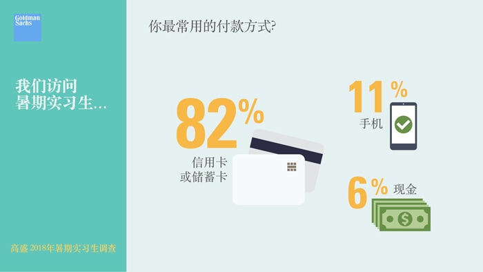 我们的实习生普遍认为使用现金付款即将或已经过时。超过九成的被访实习生最常用信用卡、储蓄卡和手机来付款: